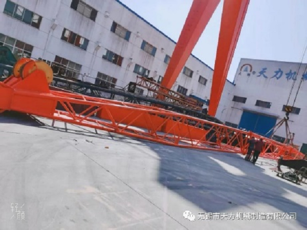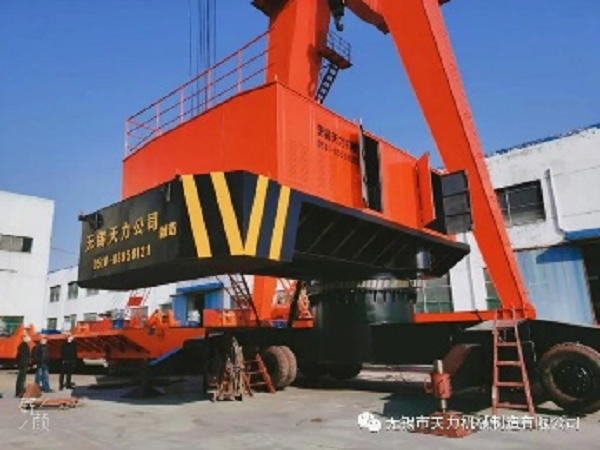 这是一台DLQ60型电动轮胎式起重机,即将发往上海。本机是一种以三相交流电源为动力的全回转变幅非自行式(牵引)和自行式起重机,具有工作效力高,安全可靠,结构简单,维修方便,成本低、能源消耗低,噪音低,无污染等优点。它适用于港口,工厂,矿山,码头等,不需要作经常移动的场所进行件货或散货的装卸。本机型按《GB3811-83起重机设计规范》和《GB6067-85起重机安全规程》设计、制造。